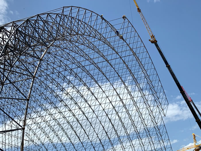 (2)网架加工前应对现场尺寸进行复测,确认无误后方可进行加工、安装;网架制作、运输、安装应遵守《空间网格结构技术规程》JGJ7-2010、《钢网架长葛螺栓球节点》JG/T 10-2009、《钢网架长葛螺栓球节点用高强度螺栓》 GB/T 16939-2016、《长葛钢结构长葛工程长葛施工规范》 GB50755-2012、《长葛钢结构长葛工程施工质量验收标准》 GB50205-2020。